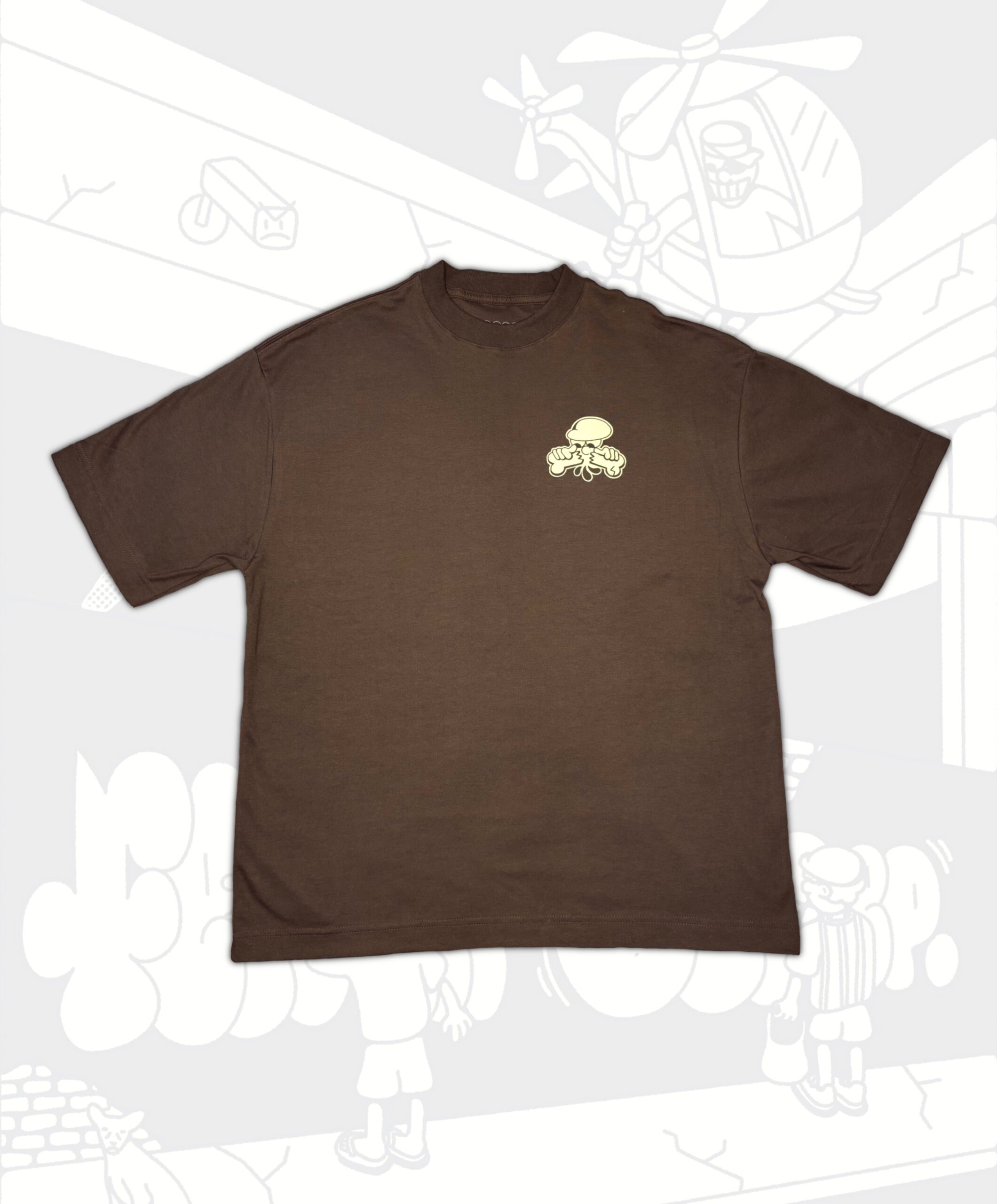 A cross-continental collaboration between FEEMBONES (Broward County, USA) and ORDEP (Bahia, Brazil). This design captures the essence of a wall the two painted throw ups together in Rio de Janeiro — translating graffiti energy into wearable streetwear.